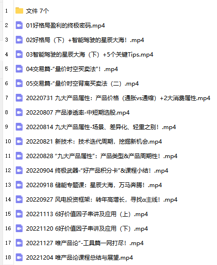 “好格局”-盈利终极密码-四期课程.pdf 3.94M “量价背离买卖法”-四期课程(二).pdf 59.06M 储能专家小范围交流20221009.mp3 16.20M 德赛西威、经纬恒润20221008.m4a 27.08M 光伏各环节景气展望电话会纪要20221009.pdf 238.49kb 全产业链比较,寻找景气度最强方向!20221009.mp3 11.81M 荀玉根-估值跌回4月底,年内还有- 波机会20221008.pdf 1.89M